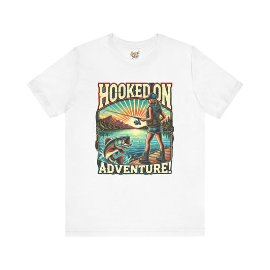 Hooked on Adventure Unisex Jersey Tee - Retro Fishing Graphic Shirt