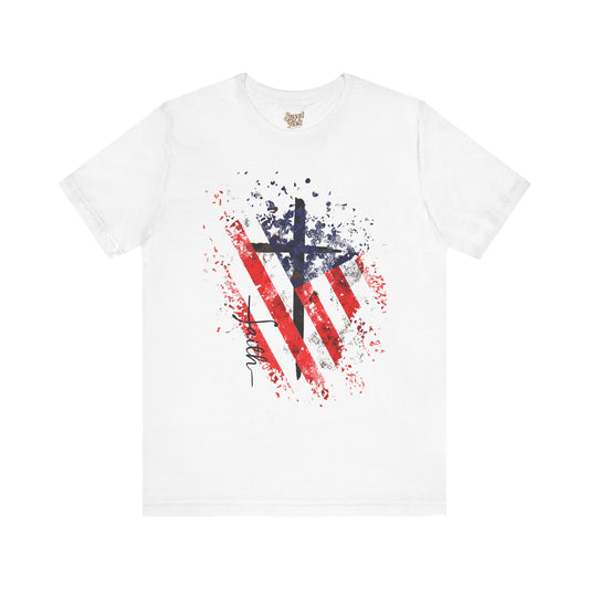 Patriotic Heart Unisex Tee - Red, White, and Blue Design